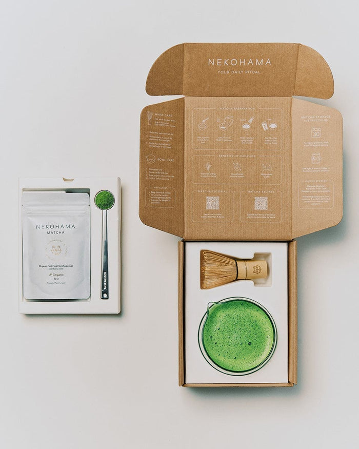 Begin your journey into the ritual of matcha with the Nekohama Essentials Kit—crafted to inspire mindfulness and elevate your daily routine. Whether you’re new to matcha or a seasoned enthusiast, this thoughtfully curated kit is designed to help you cultivate a deeper connection to yourself through the mindful ritual of preparing matcha.